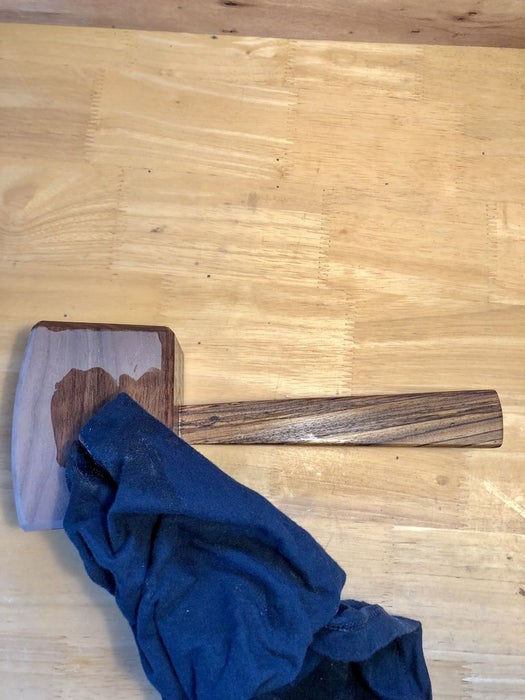 Finish the mallet in a finish of your choice. For mine, I prefer a penetrating oil followed by a gel Polyethylene for its hardness. This step is my favourite. This is when the wood will really pop and get that nice shine.
